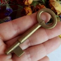 Antiga e com marcas naturais do tempo e de uso, ela provavelmente abria armário ou cristaleira daquela época. De bronze maciço, esta chave é sem dúvida uma peça carregada de história, e terá uma utilização muito especial nas mãos do praticante de Magia que sabe lidar com este tipo de instrumento.