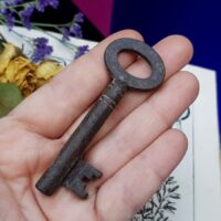 Antiga e com marcas naturais do tempo e de uso. De ferro, esta chave é sem dúvida uma peça carregada de história, e terá uma utilização muito especial nas mãos do praticante de Magia que sabe lidar com este tipo de instrumento.