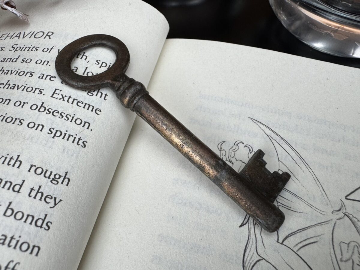A tradição mágica sustenta que a Chave Mestra deve ser antiga, ostentando marcas naturais de uso e envelhecimento, carregando em sua essência a história das mãos que a tocaram e dos portais que abriu. Por conta disso, cada chave passa por uma leitura energética minuciosa, para desvendar a natureza da energia que carrega, compreender sua vibração única e direcioná-la adequadamente. Esse processo permite alinhar a chave ao seu propósito mágico, garantindo que se torne um instrumento poderoso e profundamente conectado ao praticante que a consagrará.