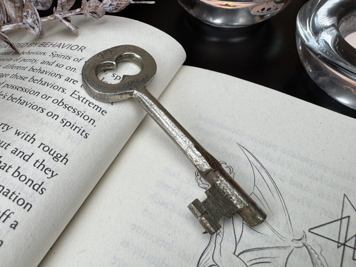 A tradição mágica sustenta que a Chave Mestra deve ser antiga, ostentando marcas naturais de uso e envelhecimento, carregando em sua essência a história das mãos que a tocaram e dos portais que abriu. Por conta disso, cada chave passa por uma leitura energética minuciosa, para desvendar a natureza da energia que carrega, compreender sua vibração única e direcioná-la adequadamente. Esse processo permite alinhar a chave ao seu propósito mágico, garantindo que se torne um instrumento poderoso e profundamente conectado ao praticante que a consagrará.