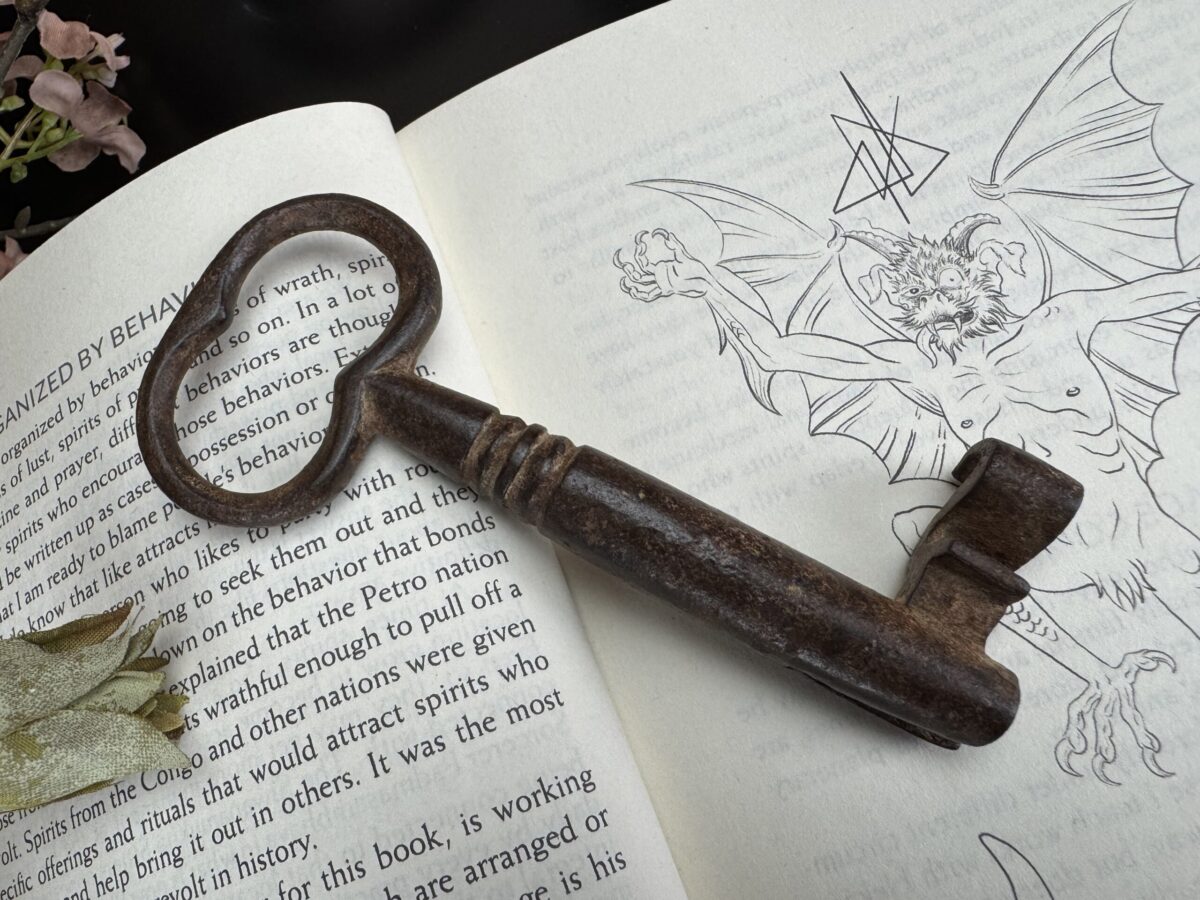 A tradição mágica sustenta que a Chave Mestra deve ser antiga, ostentando marcas naturais de uso e envelhecimento, carregando em sua essência a história das mãos que a tocaram e dos portais que abriu. Por conta disso, cada chave passa por uma leitura energética minuciosa, para desvendar a natureza da energia que carrega, compreender sua vibração única e direcioná-la adequadamente. Esse processo permite alinhar a chave ao seu propósito mágico, garantindo que se torne um instrumento poderoso e profundamente conectado ao praticante que a consagrará.