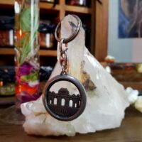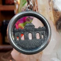 Chaveiro espanhol lembrança de Sabatini com imagem da Porta de Alcalá.