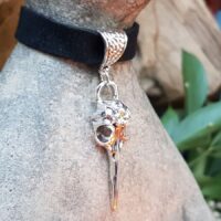 Gargantilha que imprimi a personalidade e estilo de quem está utilizando. Uma peça pratica e muito bonita, feita em suede com fecho e pingente metálicos em forma de Corvo Skull.