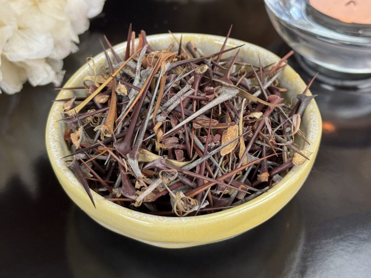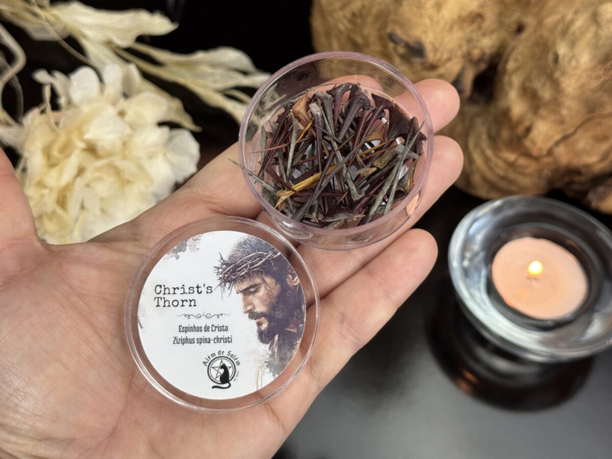 - 3g de espinhos de Christ’s Thorn – Espinhos de Cristo Ziziphus spina-christi (entre 55 e 65 espinhos) em embalagem acrílica.