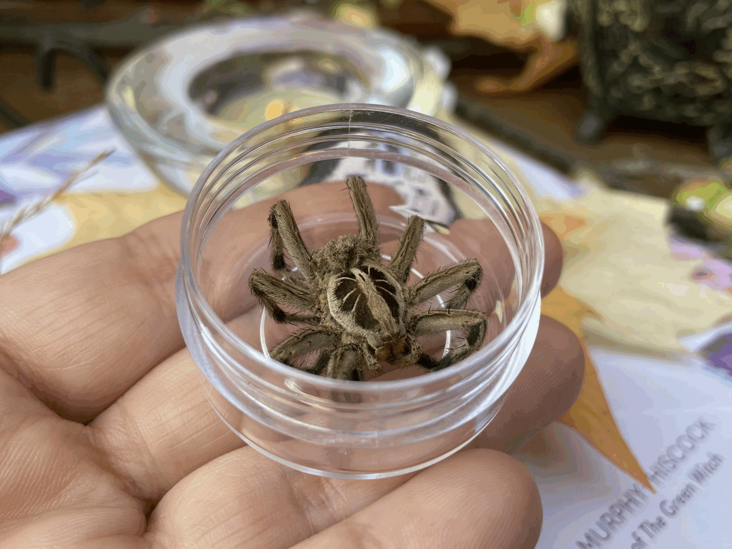 - 1 unidade de aranha peçonhenta com tamanhos entre 1.5 a 2.5 cm (fechada) em recipiente acrílico com lacre de segurança