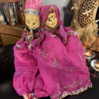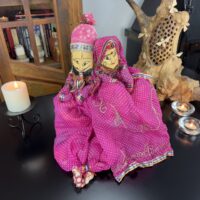 O Rajastão, conhecido por sua rica cultura e tradições seculares, é o berço dos Fantoches Kathputli, um dos aspectos mais vibrantes e icônicos da cultura indiana. Este Casal de Dolls do Rajastão é uma expressão genuína dessa arte tradicional, feita à mão por artesãos locais. Cada boneco carrega a simplicidade e o esforço comunitário das comunidades do Rajastão, refletindo a essência de suas tradições culturais.