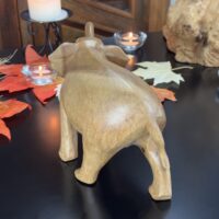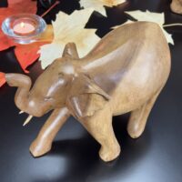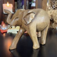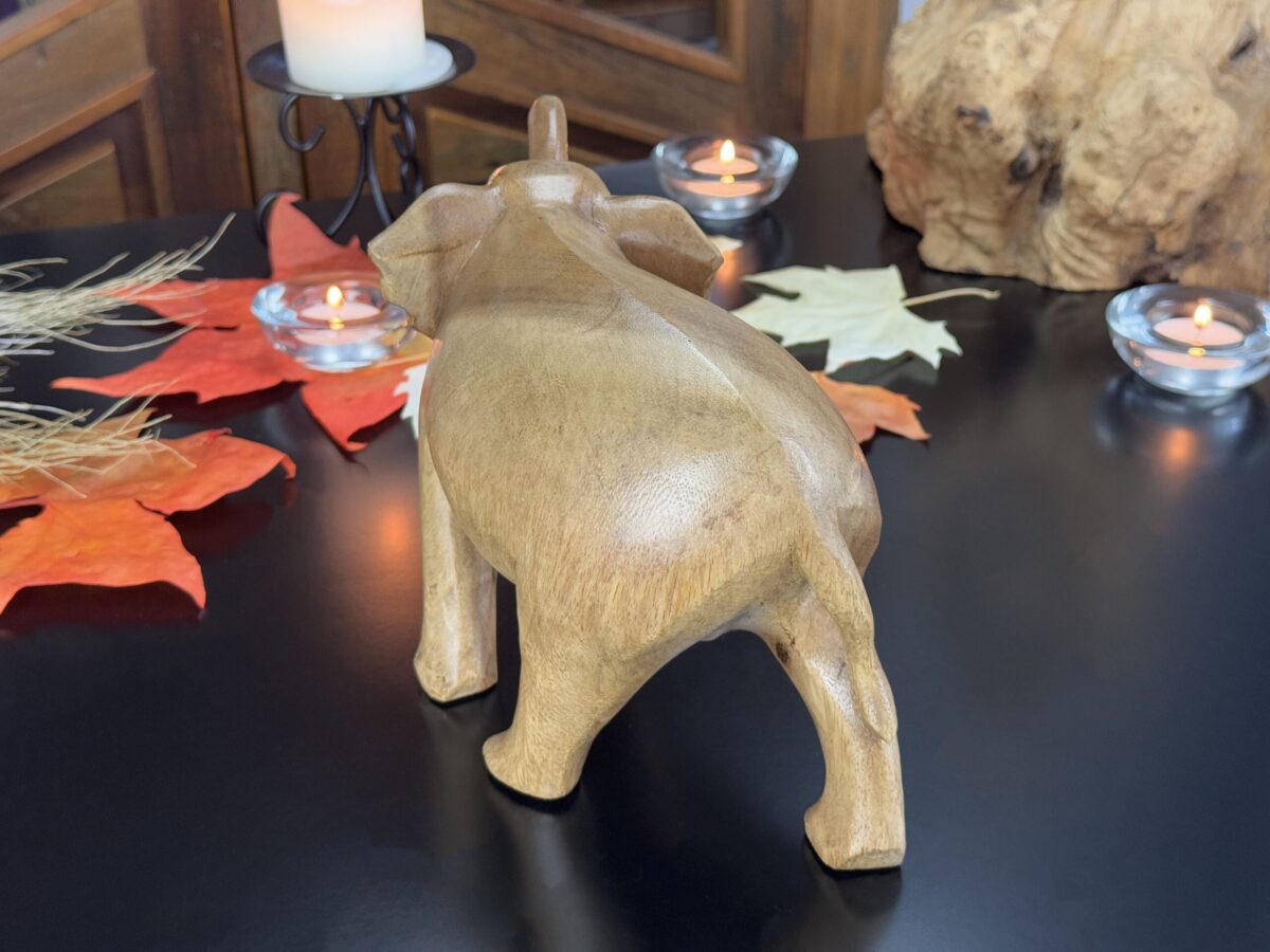 Este majestoso elefante foi cuidadosamente entalhado à mão por artesãos da Indonésia, utilizando técnicas tradicionais que exaltam a riqueza cultural e espiritual da região. Feito em madeira de alta qualidade, cada detalhe transmite a força, a sabedoria e a serenidade que o elefante simboliza.