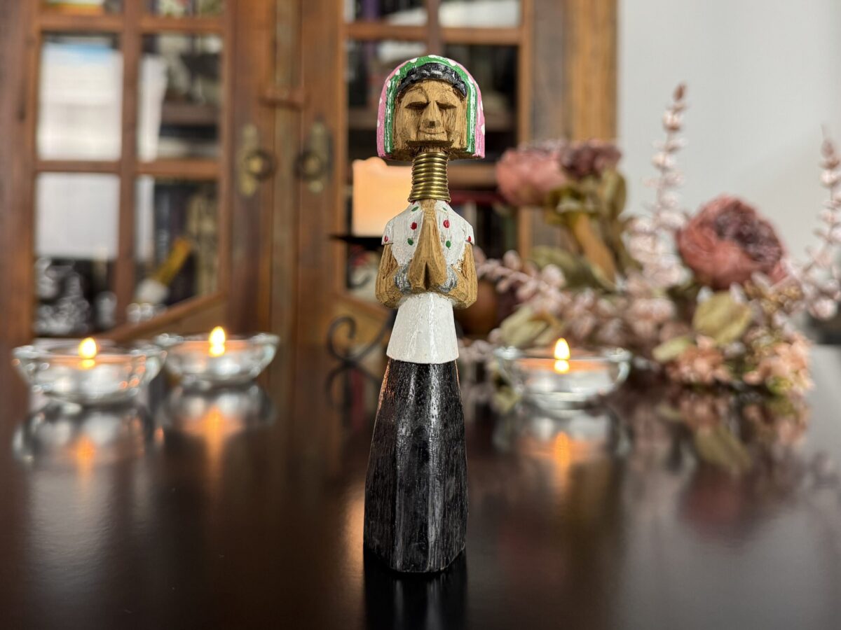 Ideal para coleções étnicas, decoração com alma ou altares espirituais ligados à ancestralidade e cultura asiática. Um símbolo de força feminina, tradição viva e beleza única.