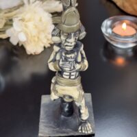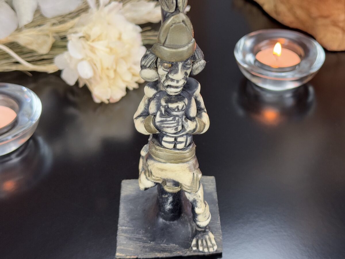 Surpreenda-se com esta Escultura Inca Artesanal, uma peça incrível produzida por talentosos artesãos peruanos. Feita em clay e pintada à mão, a figura inca rica em detalhes carrega simbolismos ancestrais e esconde em seu interior um athame (faca cerimonial), transformando esta obra em um objeto multifuncional de grande valor cultural e espiritual.