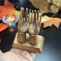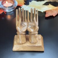 Esta delicada escultura em madeira, entalhada à mão por artesãos de Bali, captura a essência da espiritualidade e da arte tradicional indonésia. Representando mãos erguidas em um gesto simbólico, a peça exala serenidade e equilíbrio, sendo ideal para quem valoriza a conexão entre arte e espiritualidade.