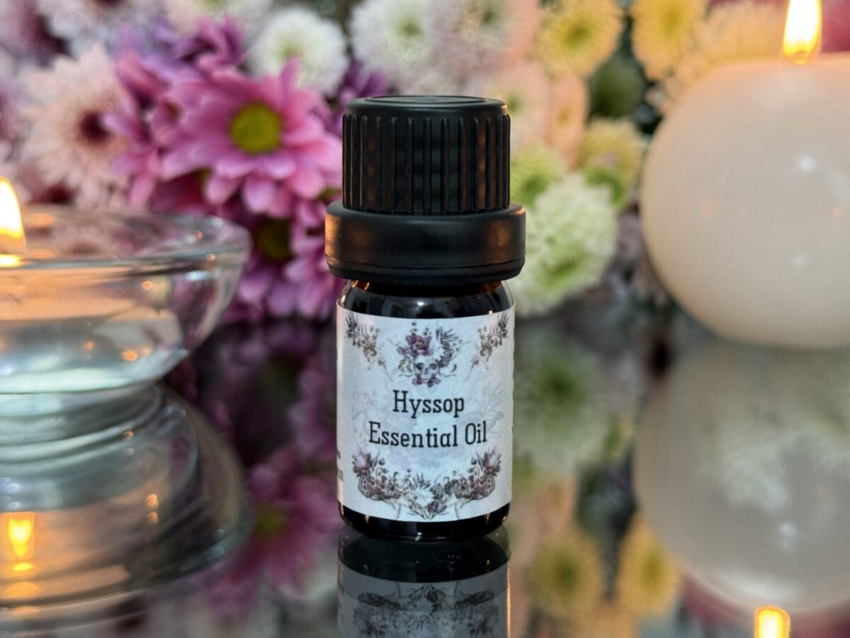 O óleo essencial de Hissopo é valorizado por suas propriedades purificadoras e protetoras. Muito utilizado para realizar limpeza espiritual, é ideal para purificar altares, templos e espaços rituais. Este óleo poderoso mantém as energias negativas afastadas, sendo eficaz na limpeza de auras e na consagração de ferramentas mágicas.