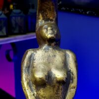 Lindíssima estátua em bronze maciço anos 70 representando deidade da água, não há nomeação de uma deusa específica então mantemos sua representação do sagrado feminino.