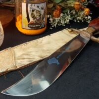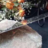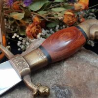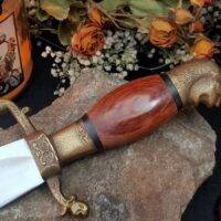 Para aqueles que gostam de objetos diferenciados e ricos em história em seus altares, esta é uma obra de arte perfeita para a representação do Athame ritualístico. Sua ponta possui fio de corte de ambos os lados, e em apenas um lado na extensão da lâmina.