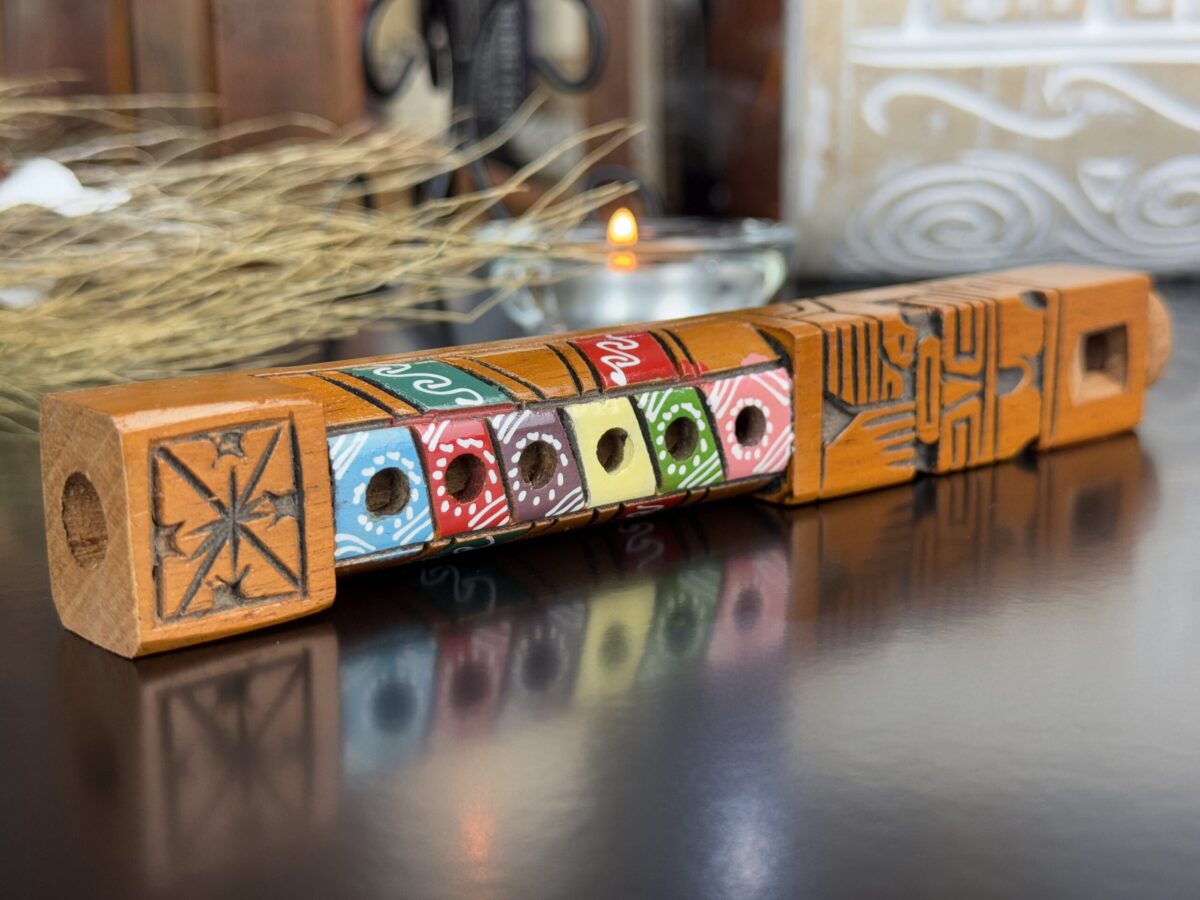 Descubra a magia dos Andes com esta Flauta Peruana Tarka Inca, feita à mão por artesãos peruanos. Este instrumento tradicional carrega séculos de cultura e espiritualidade em seu design único e vibrante, perfeito para praticantes de Magia, colecionadores e apreciadores de arte.