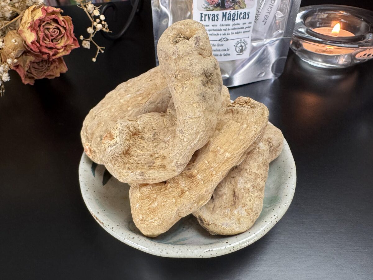 A Gastrodia Elata, conhecida popularmente como Tian Ma, Erva do Céu” e Heavenly Hemp é uma orquídea Extremamente rara da Ásia, reverenciada há séculos tanto na medicina tradicional chinesa quanto em práticas espirituais. Diferente da maioria das plantas, ela não possui folhas nem realiza fotossíntese, vivendo de forma simbiótica com fungos subterrâneos, o que lhe confere uma aura misteriosa e quase fantasmagórica. Seus rizomas carnudos e sua aparência singular fizeram dela um elemento sagrado em muitas culturas, associada à clareza mental, à proteção espiritual e à conexão com planos elevados. Além de seu valor terapêutico para tratar distúrbios do sistema nervoso, a Gastrodia elata é considerada uma planta mágica, utilizada em rituais de cura, meditação e fortalecimento psíquico, sendo vista como um verdadeiro elo entre o mundo material e o espiritual.