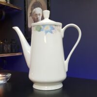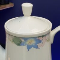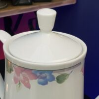 Grande bule em porcelana Gibson da década de 70 com bela e delicada policromia de flores aquareladas.