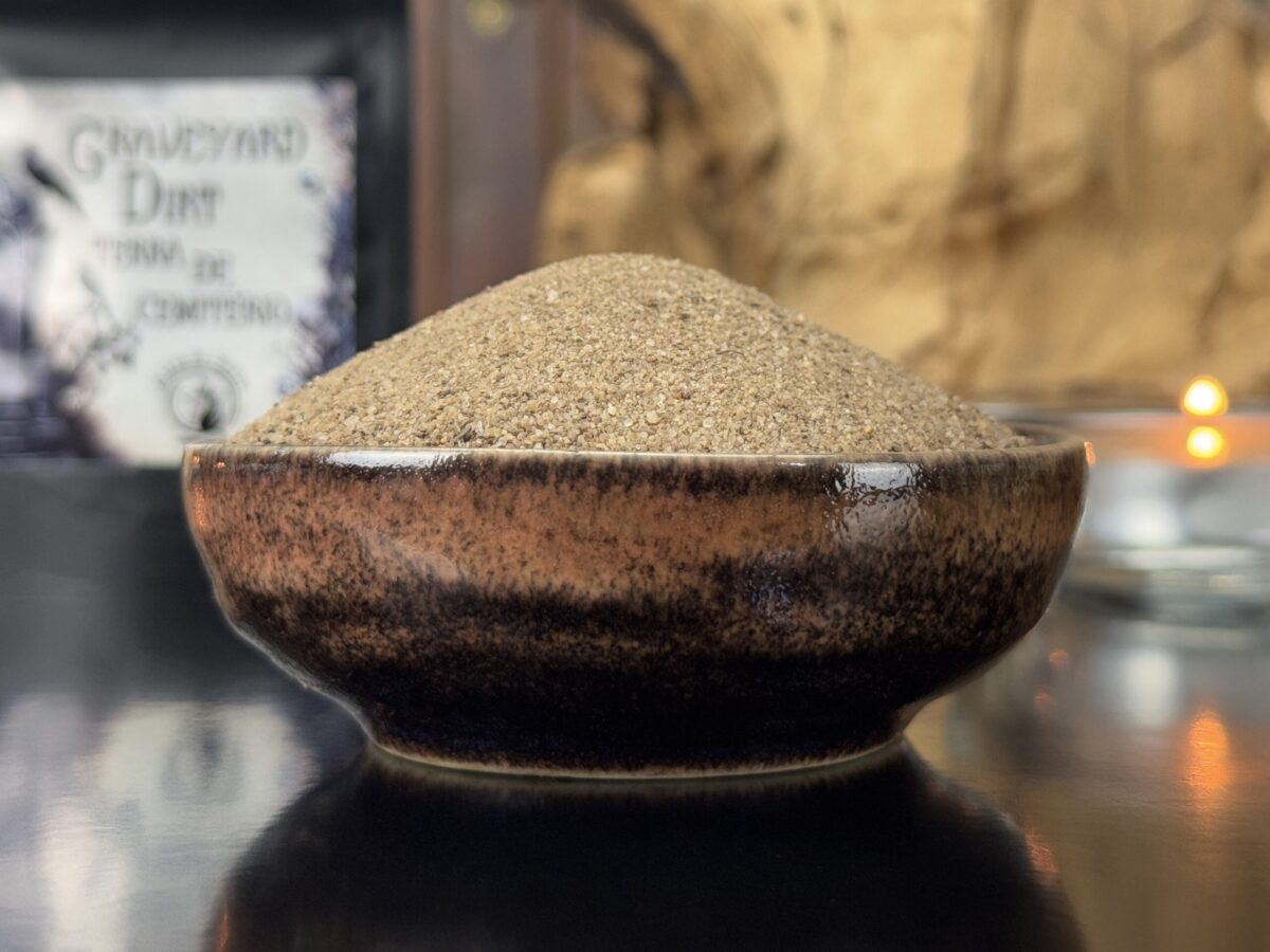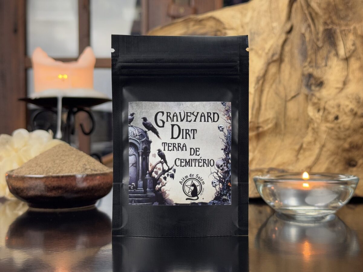 Assim, a terra de cemitério disponível na loja foi coletada pelo mestre Alluh Amon, garantindo que todo o processo fosse conduzido com a máxima segurança, respeito e observância dos rituais apropriados, incluindo a prática de oferendas, para assegurar que o material seja um condutor efetivo nas práticas mágicas.