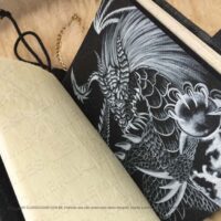 O livro possui folhas envelhecidas com ervas e grãos, que agregam uma excelente energia ao seu tom de papel esverdeado. Ilustrado com pintura feita à mão de dragão através da técnica de desenho e aquarela pelo artista plástico Aluh Amon.