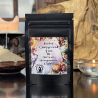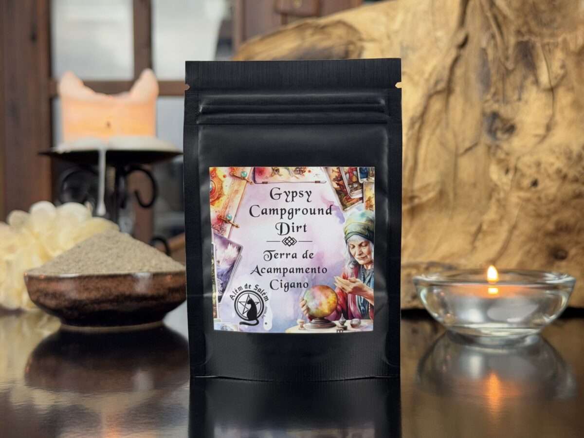 “Gypsy Campground Dirt – Terra de Acampamento Cigano” é um componente mágico profundamente enraizado na rica diversidade das tradições nômades e na cultura cigana, conhecida por sua conexão intensa com a terra, a liberdade e as artes divinatórias. Esta terra é coletada de locais que serviram de acampamentos para comunidades ciganas, espaços que ecoam com histórias de viagem, troca cultural, música, dança e práticas esotéricas.