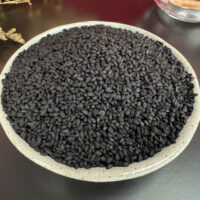 A Kalonji, Nigella sativa, também conhecida como Black Seed, Black Cumin Seed e Blessed Seed, é uma semente pequena e poderosa, carregada de tradição espiritual e simbolismo de preservação. Em registros de práticas rituais islâmicas, ela aparece acompanhada de mel, ervas e orações do Alcorão, com a crença de que esse conjunto ampliava suas virtudes de cura e libertação. Há ainda a famosa referência atribuída ao Profeta Maomé que a descreve como remédio para todas as doenças exceto a morte, o que consolidou sua reputação como semente de bênção, dignidade e honra, mantida até hoje em muitos contextos devocionais.
