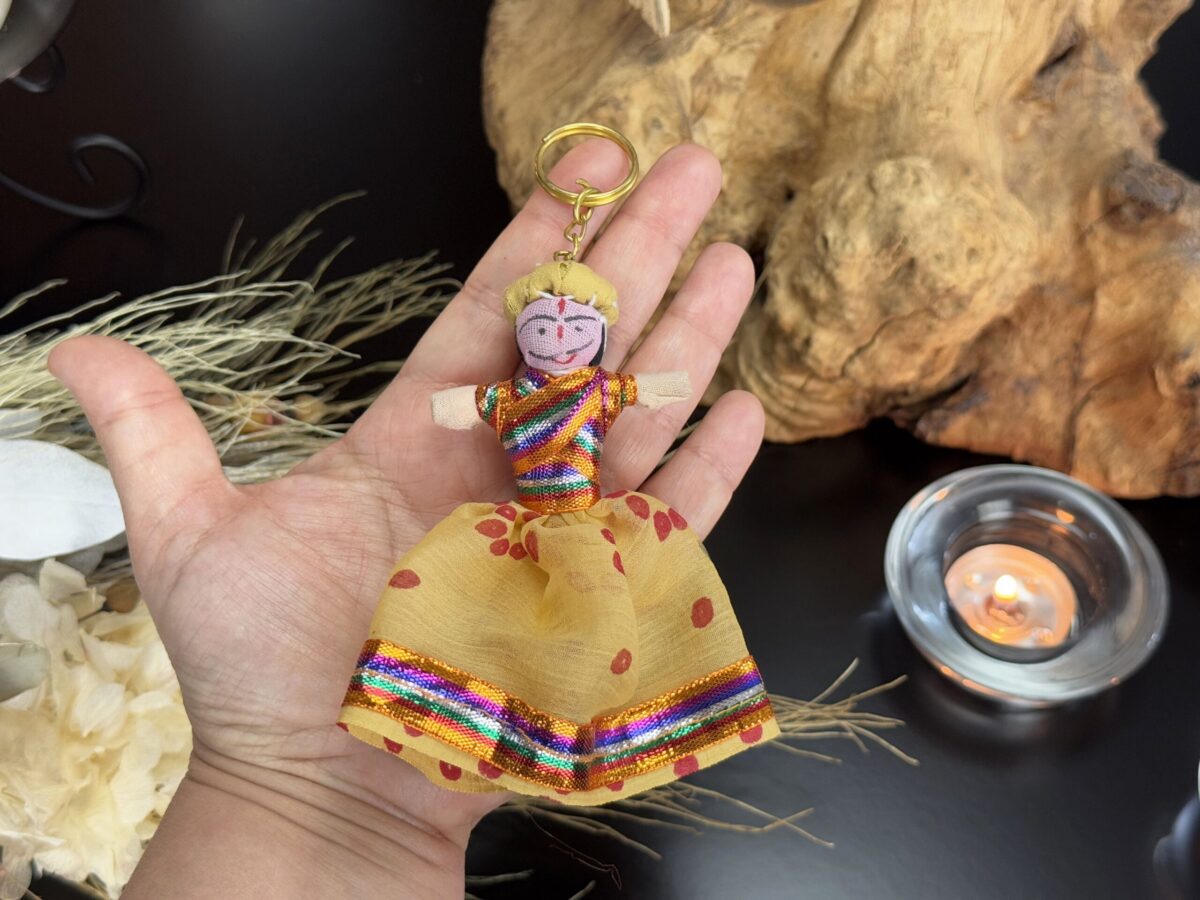 O Rajastão é conhecido por sua cultura e tradições seculares. Os bonecos típicos do Rajastão são feitos com muita simplicidade, de forma artesanal, com madeira de mangueira e tecidos antigos de cores vibrantes. Todo trabalho é 100% manual, logo os tecidos são amarrados e costurados de forma irregular e suas extremidades muitas vezes são desfiadas. E é justamente isso que caracteriza um Doll original, típico do Rajastão.