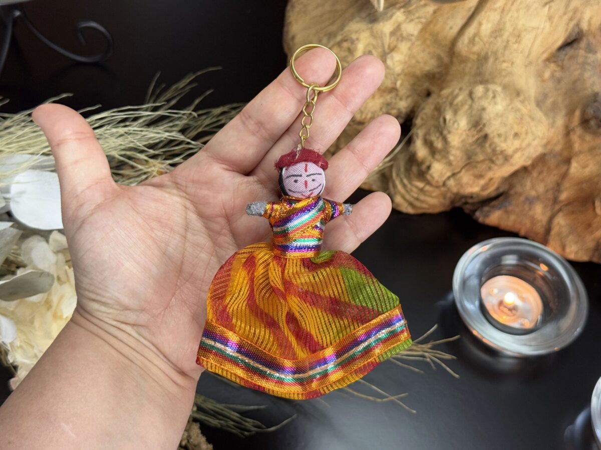 O Rajastão é conhecido por sua cultura e tradições seculares. Os bonecos típicos do Rajastão são feitos com muita simplicidade, de forma artesanal, com madeira de mangueira e tecidos antigos de cores vibrantes. Todo trabalho é 100% manual, logo os tecidos são amarrados e costurados de forma irregular e suas extremidades muitas vezes são desfiadas. E é justamente isso que caracteriza um Doll original, típico do Rajastão.