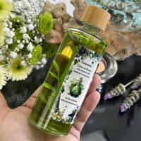 Cada frasco é uma poção singular, contendo um ramo de Arruda cuidadosamente selecionado, que se harmoniza perfeitamente ao aroma distintivo, enriquecendo a fragrância envolvente da lavanda e dos outros óleos essenciais incorporados.