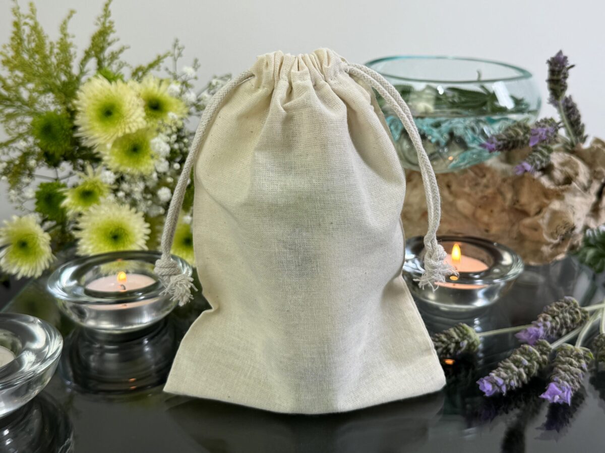 - 01 bag de tecido em algodão cru para armazenar a lavanda.