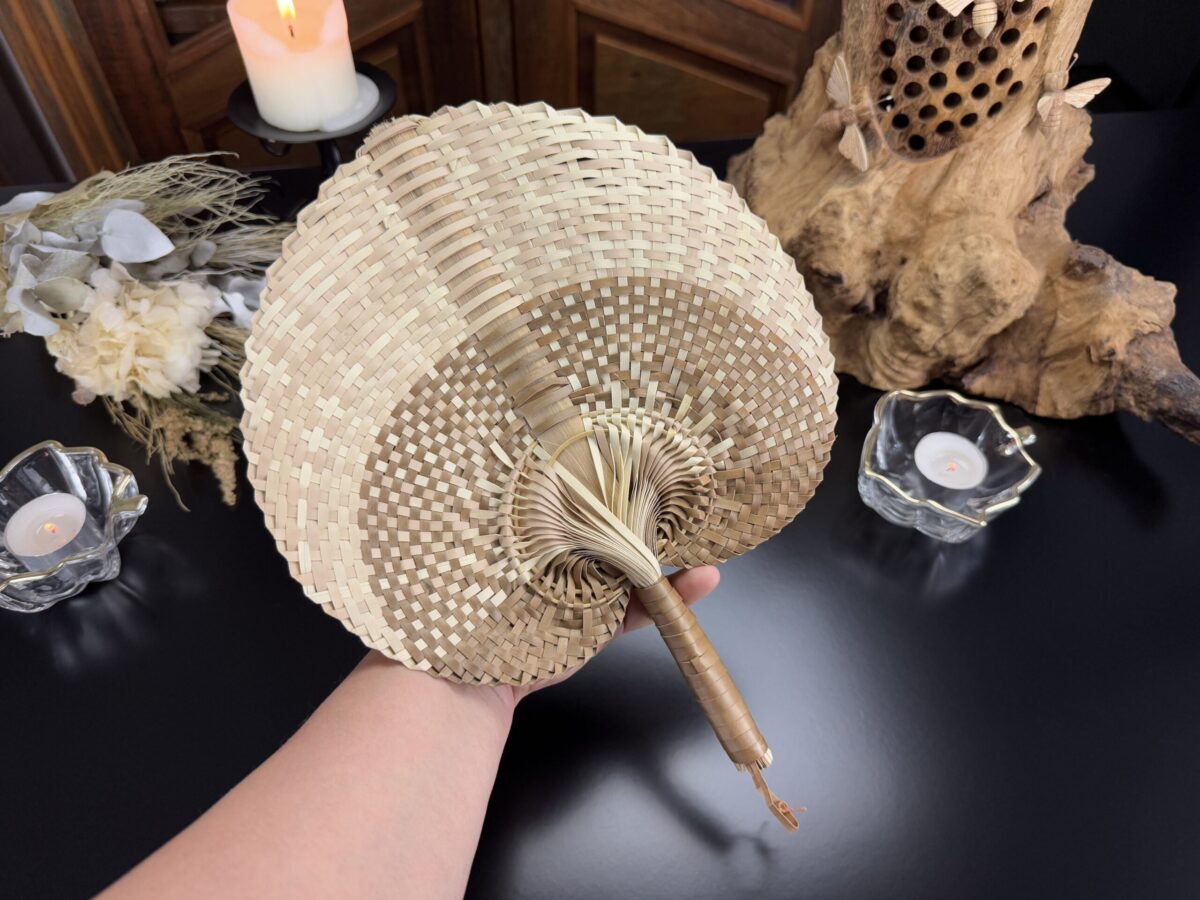 Com um design clássico e natural, o leque de palha também é ideal como elemento decorativo em altares, ambientes zen ou espaços que valorizam a estética rústica e a conexão com a natureza. Na espiritualidade, leques são frequentemente associados à purificação de energias, sendo usados para dispersar fumaças de incensos ou ervas durante práticas ritualísticas.