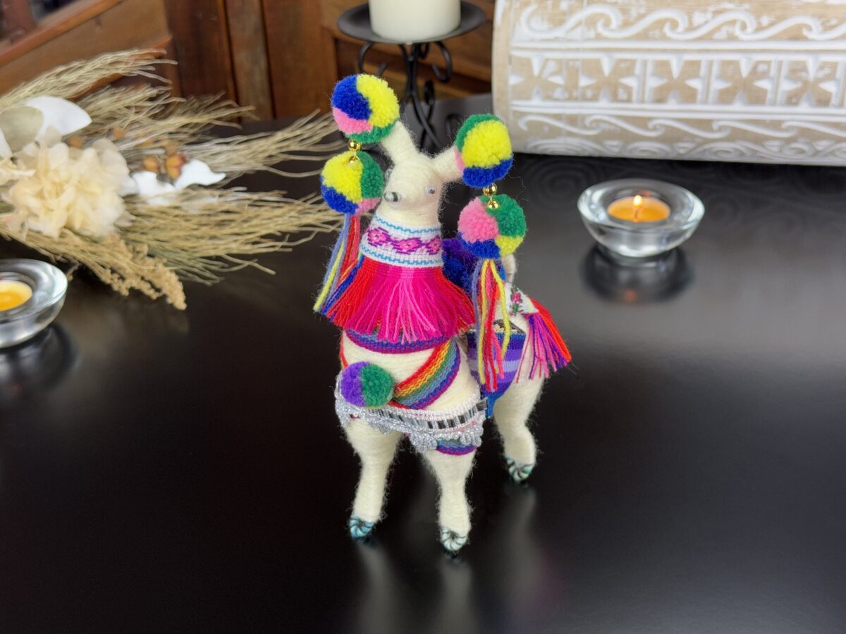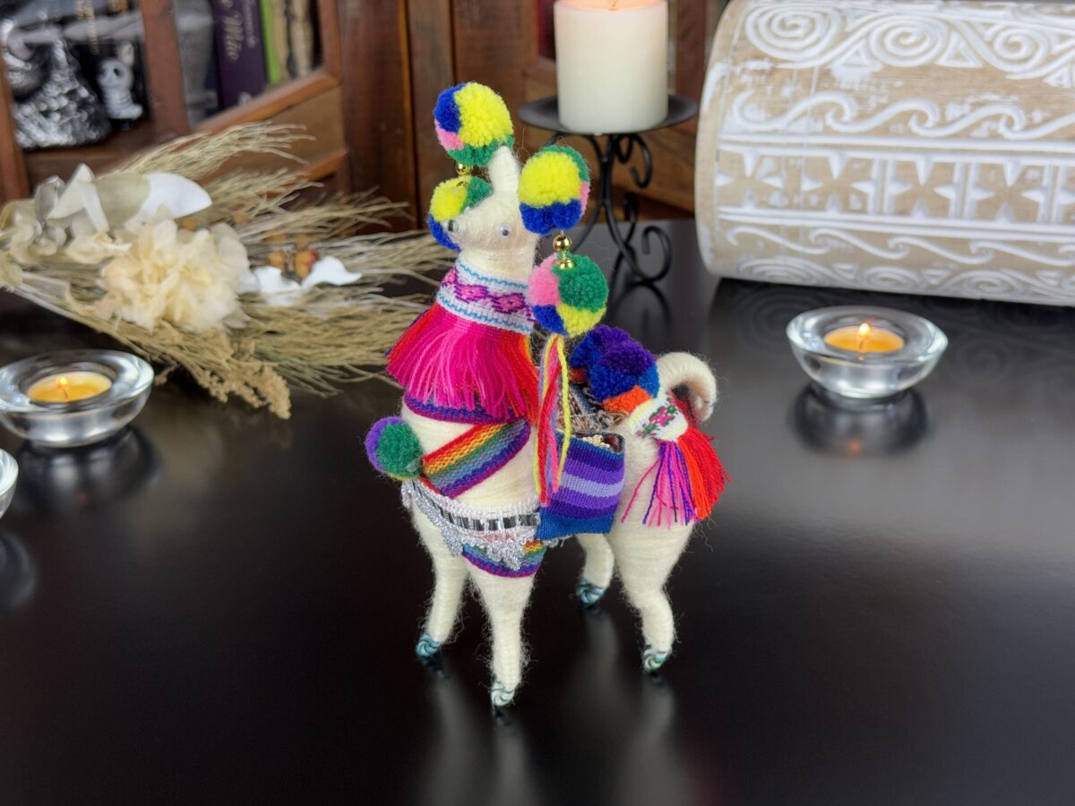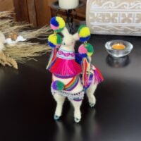 As cores alegres e os adornos feitos à mão celebram a tradição andina, que valoriza a harmonia entre natureza e criatividade. Esses itens não são apenas decorativos, mas também carregam o simbolismo espiritual das lhamas, vistas como animais de proteção e força na cultura andina.