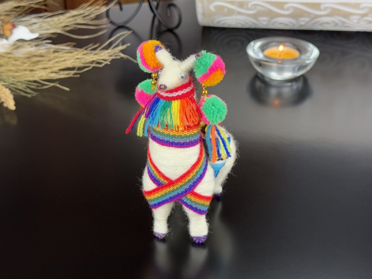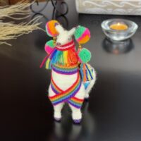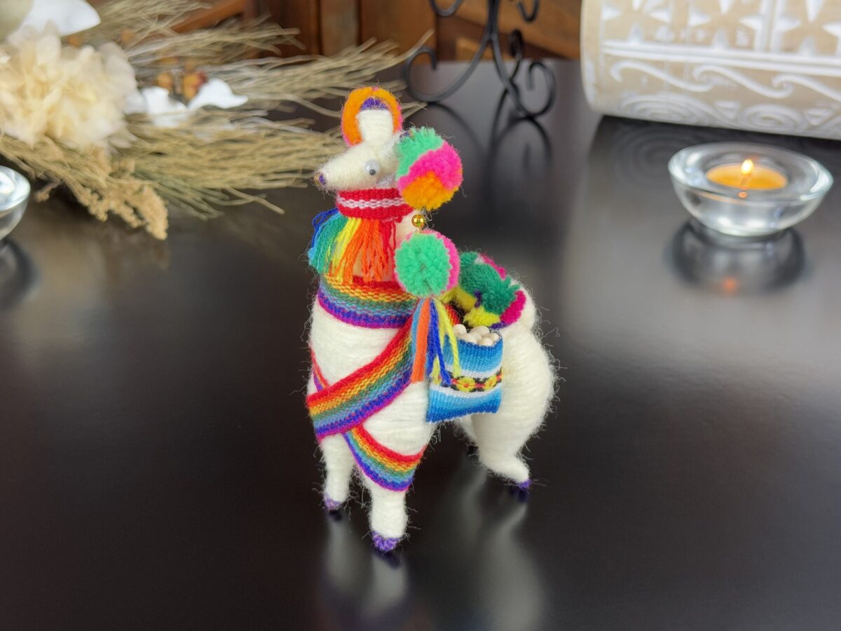 As cores alegres e os adornos feitos à mão celebram a tradição andina, que valoriza a harmonia entre natureza e criatividade. Esses itens não são apenas decorativos, mas também carregam o simbolismo espiritual das lhamas, vistas como animais de proteção e força na cultura andina.