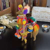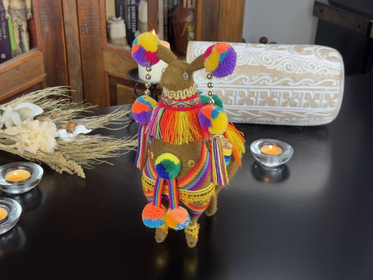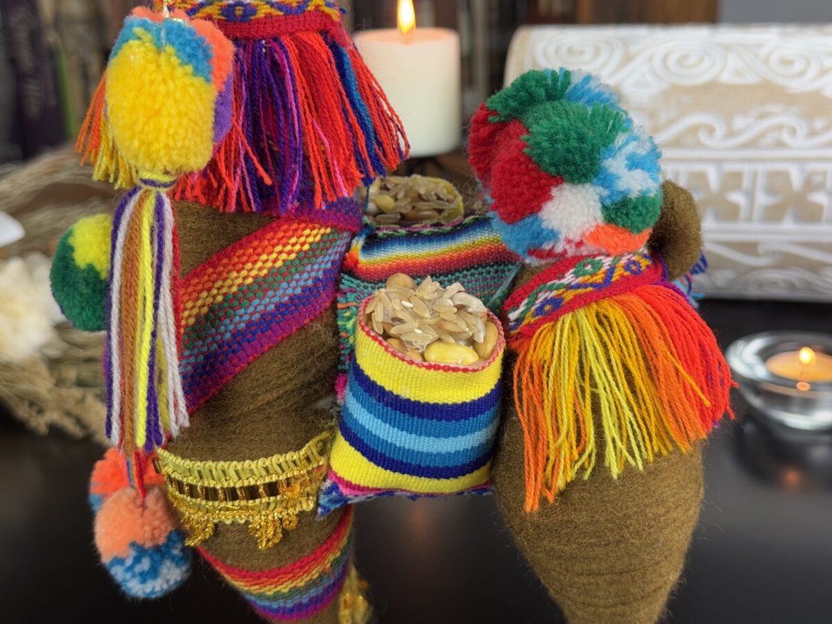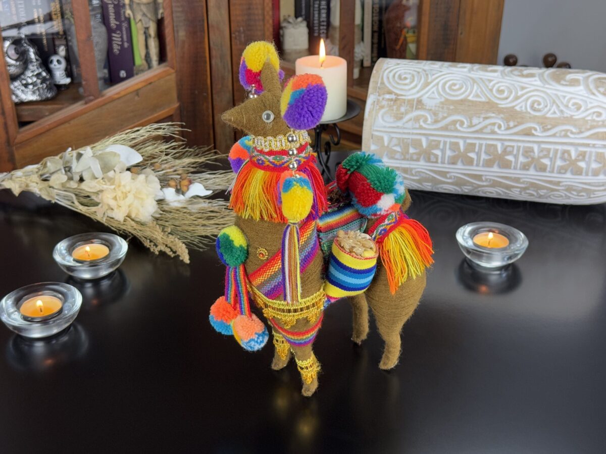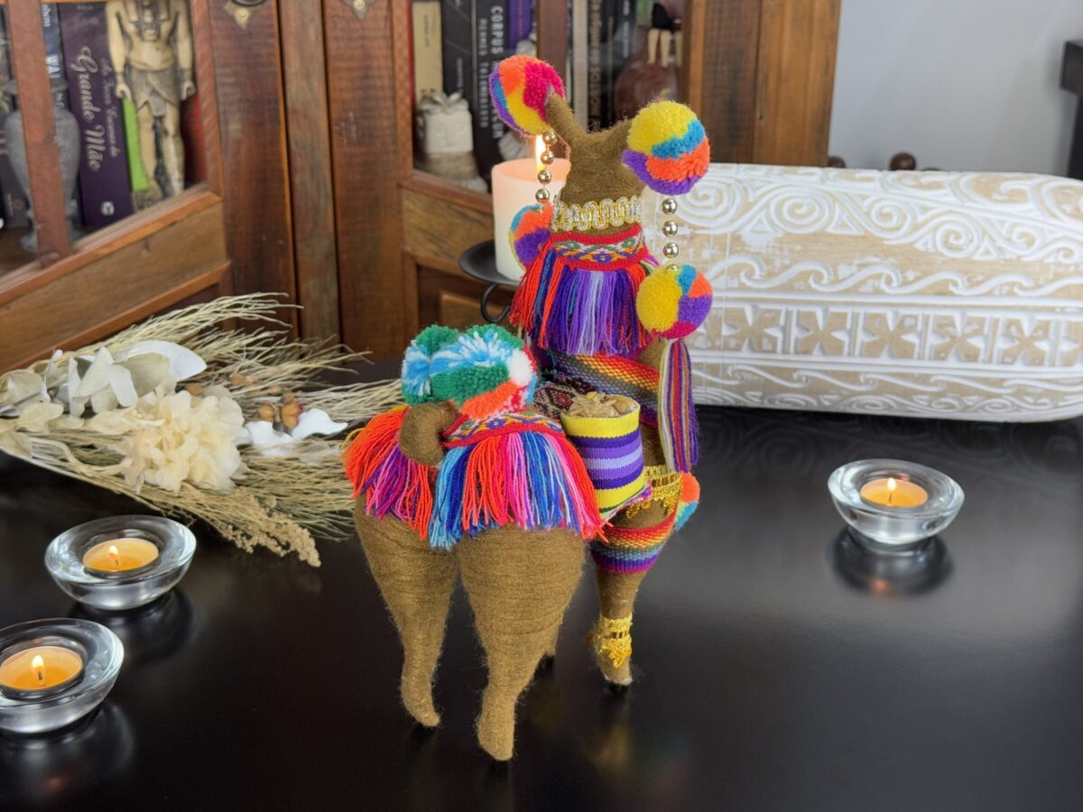 As cores alegres e os adornos feitos à mão celebram a tradição andina, que valoriza a harmonia entre natureza e criatividade. Esses itens não são apenas decorativos, mas também carregam o simbolismo espiritual das lhamas, vistas como animais de proteção e força na cultura andina.
