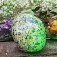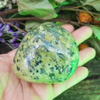 Imponente pedra rolada em tamanho gigante de jadeíta. Com formato redondo irregular, pode ser utilizada em diversas formas na Magia ou em massoterapia.