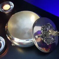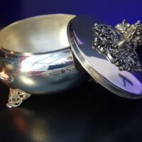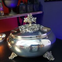 Belíssima peça, antigamente utilizada como porta-joias, representa na sua totalidade um caldeirão com as conexões entre a Prata e à Magia Sutil.