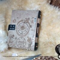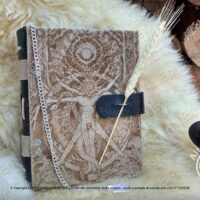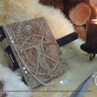 Livro das Sombras Grimório Alquimia e Magia, esse exemplar e exclusivo totalmente confeccionado conforme os costumes pagãos tradicionais. Em couro natural, sua costura em técnica medieval e riqueza nos detalhes, fazem deste exemplar uma peça única.