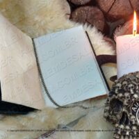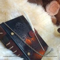Livro das Sombras Grimório Consagração da Arte, esse exemplar e exclusivo totalmente confeccionado conforme os costumes pagãos tradicionais. Em couro legítimo, sua costura em técnica medieval e riqueza nos detalhes, fazem deste exemplar uma peça única.