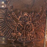 Livro das Sombras Grimório Egípcio Gold com porta Varinha . Exemplar edição Luxo Além de Salém, totalmente confeccionado conforme os costumes pagãos tradicionais. Em couro legítimo, sua costura em técnica medieval e riqueza nos detalhes, fazem deste exemplar uma peça única.