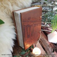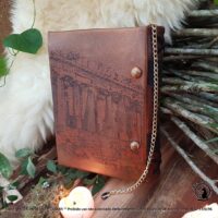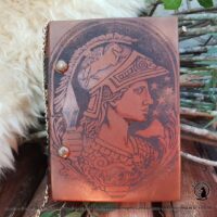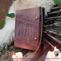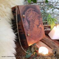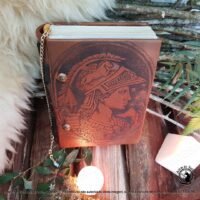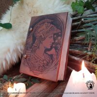 Livro das Sombras Grimório Greek Goddess, esse exemplar e exclusivo totalmente confeccionado conforme os costumes pagãos tradicionais. Em couro natural, sua costura em técnica medieval e riqueza nos detalhes, fazem deste exemplar uma peça única.