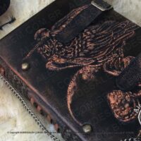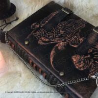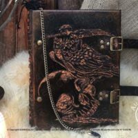 Livro das Sombras Grimório Raven Gold com arte original . Exemplar edição Luxo Além de Salém, totalmente confeccionado conforme os costumes pagãos tradicionais. Em couro legítimo, sua costura em técnica medieval e riqueza nos detalhes, fazem deste exemplar uma peça única.