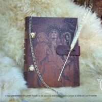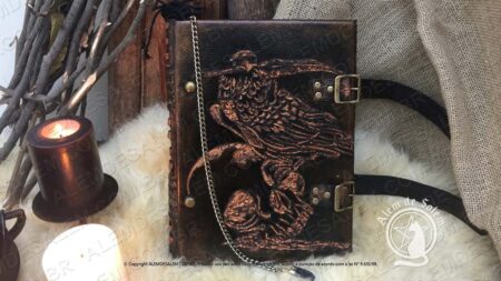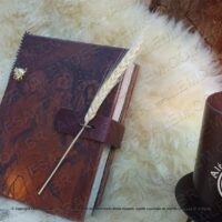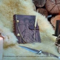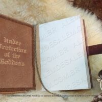 Livro das Sombras Grimório Três Faces da Deusa , esse exemplar e exclusivo totalmente confeccionado conforme os costumes pagãos tradicionais. Em couro legítimo, sua costura em técnica medieval e riqueza nos detalhes, fazem deste exemplar uma peça única.