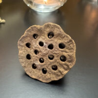No uso mágico e ritual, a Lotus Seedpod é valorizada como peça de altar, objeto de consagração e receptáculo simbólico para trabalhos de manifestação, proteção espiritual e alinhamento interior. Seu formato único, conhecido popularmente como Alien Eyes, também favorece rituais de percepção, foco e vigilância espiritual, sendo usada para fortalecer a presença do praticante e a clareza do propósito.
