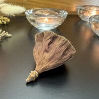 O lótus é reverenciado como flor divina em diversas tradições, especialmente no hinduísmo e no budismo, por representar elevação, consciência e pureza que nasce mesmo em águas profundas. A seedpod carrega essa assinatura de permanência e sustentação espiritual, funcionando como um amuleto natural ligado a conexão, prosperidade e enraizamento da intenção.