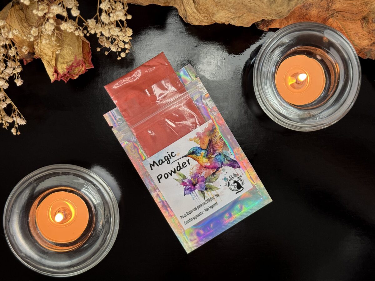 - Contém Glitter: Adiciona um toque de brilho, intensificando o efeito visual e energético do pó mágico.