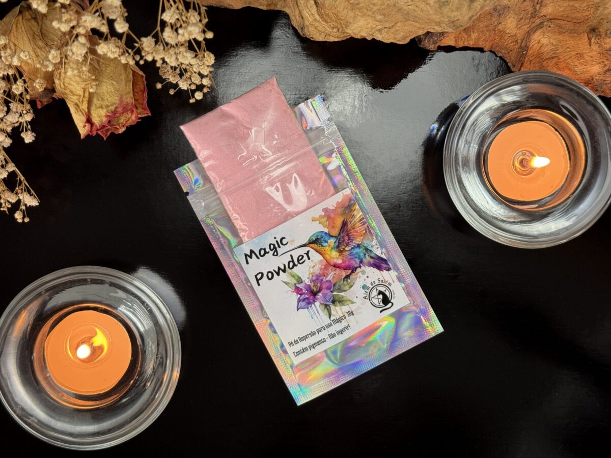 - Contém Glitter: Adiciona um toque de brilho, intensificando o efeito visual e energético do pó mágico.