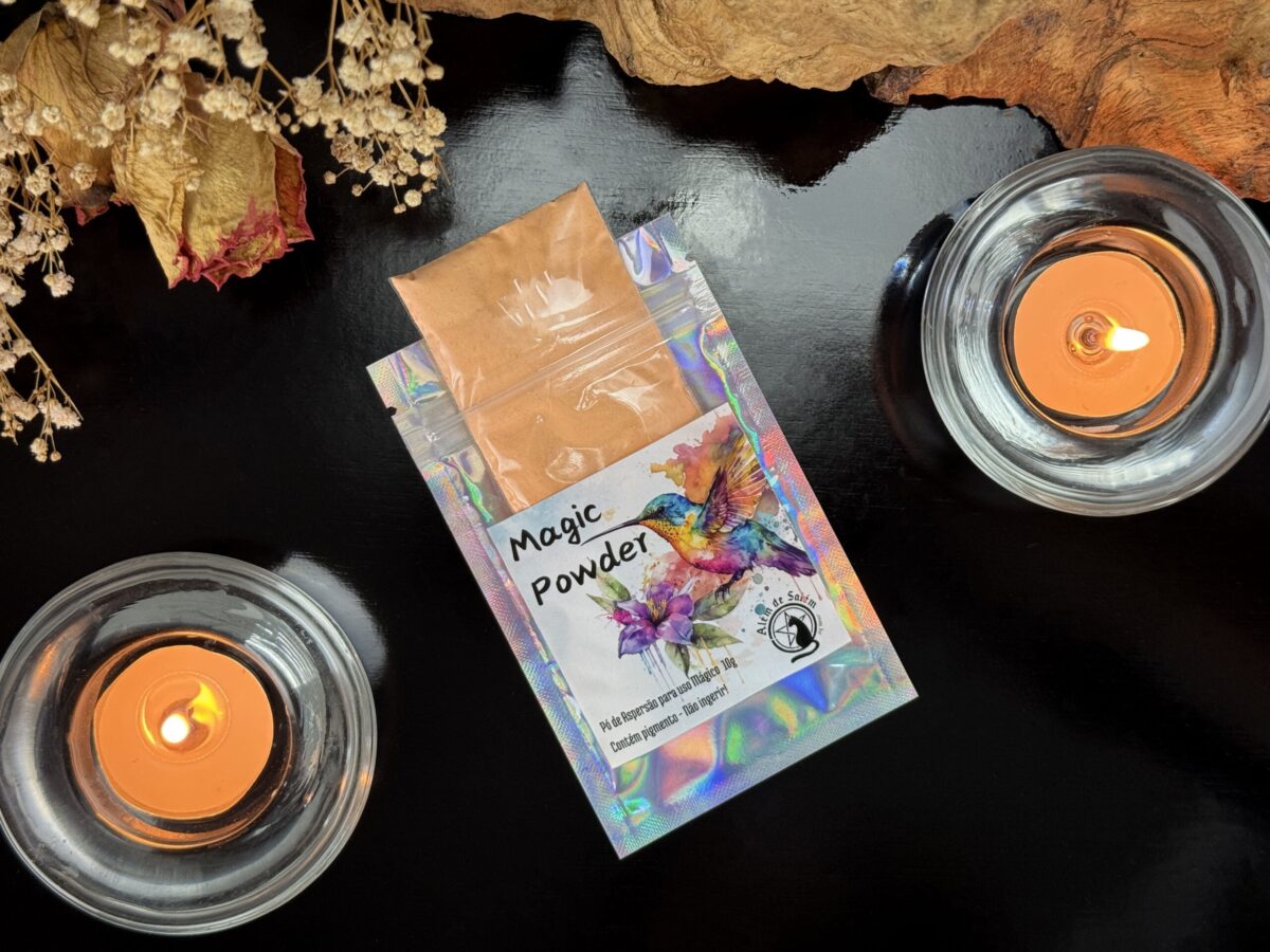 - Contém Glitter: Adiciona um toque de brilho, intensificando o efeito visual e energético do pó mágico.