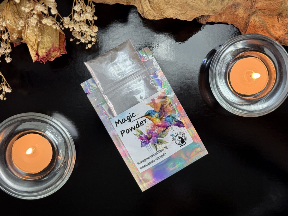 - Contém Pigmento Metalizado: Adiciona um toque de brilho, intensificando o efeito visual e energético do pó mágico.