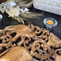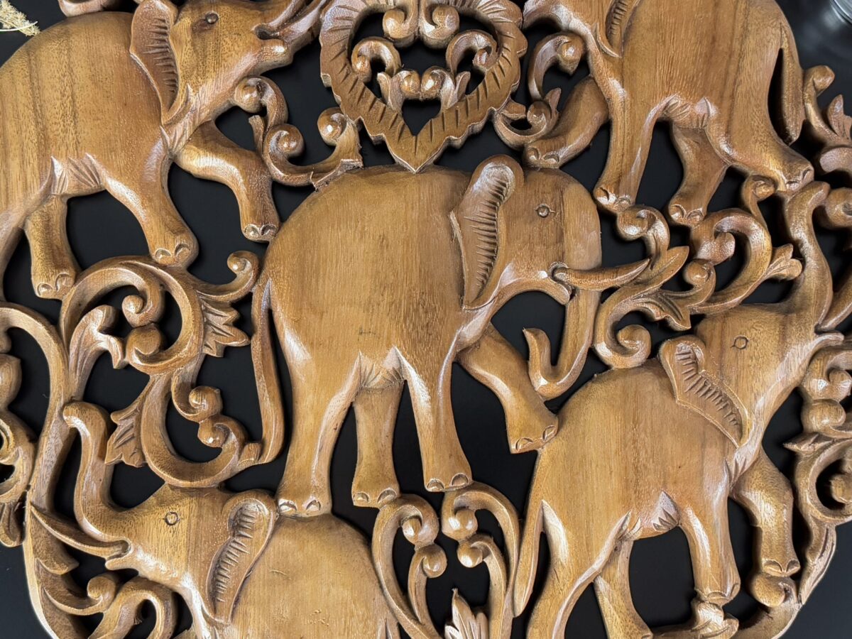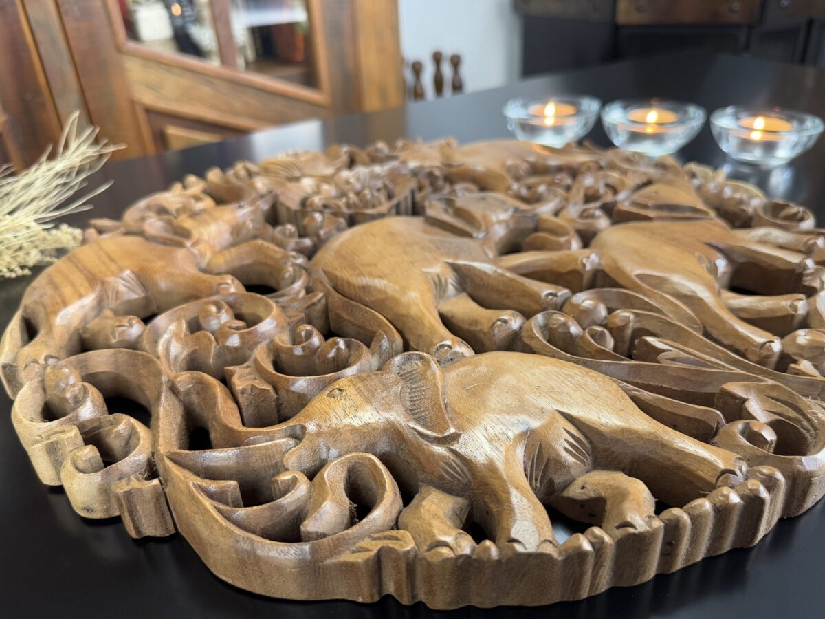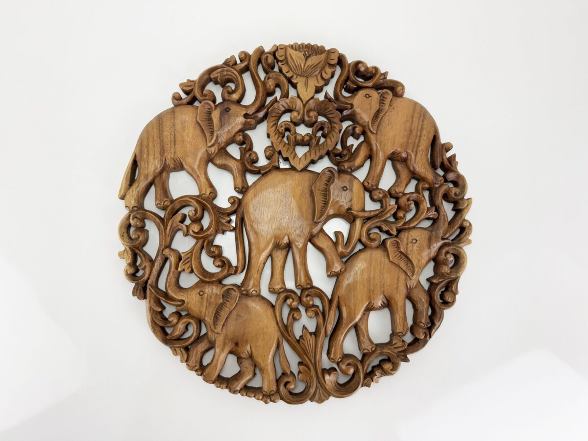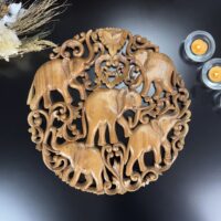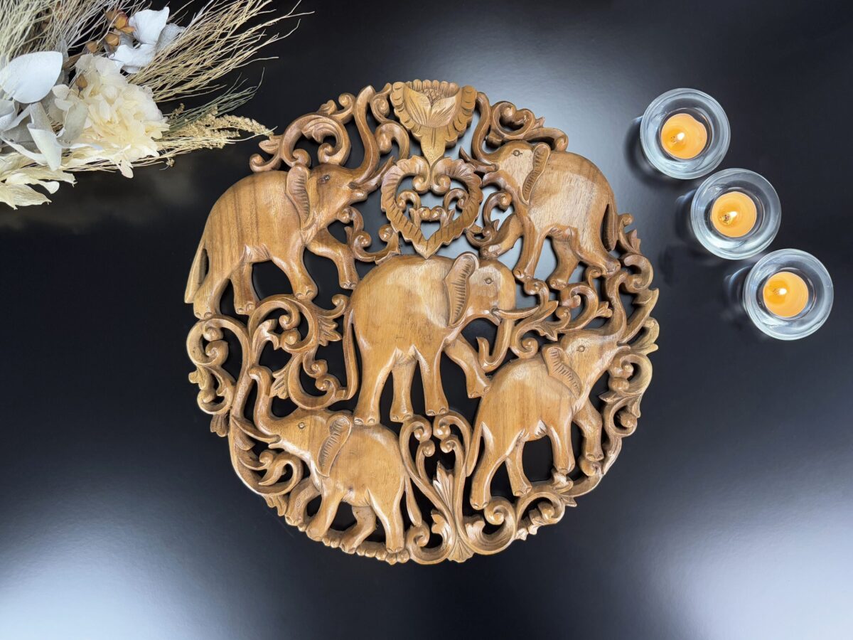 Transforme o ambiente com a energia e a beleza desta incrível mandala entalhada à mão na Indonésia! Feita de madeira nobre, sua riqueza de detalhes destaca a figura dos elefantes, símbolo de força, sabedoria e proteção.