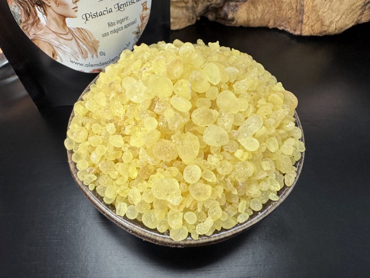 A Mastic Gum é uma resina preciosa e rara extraída da árvore Pistacia lentiscus, exclusiva da ilha de Chios, na Grécia. Com suas pérolas claras e amarelas, esta resina é amplamente valorizada por suas propriedades purificadoras e espirituais, sendo um ingrediente essencial em diversas práticas rituais, além de aplicações em restauração de obras de arte e instrumentos musicais.