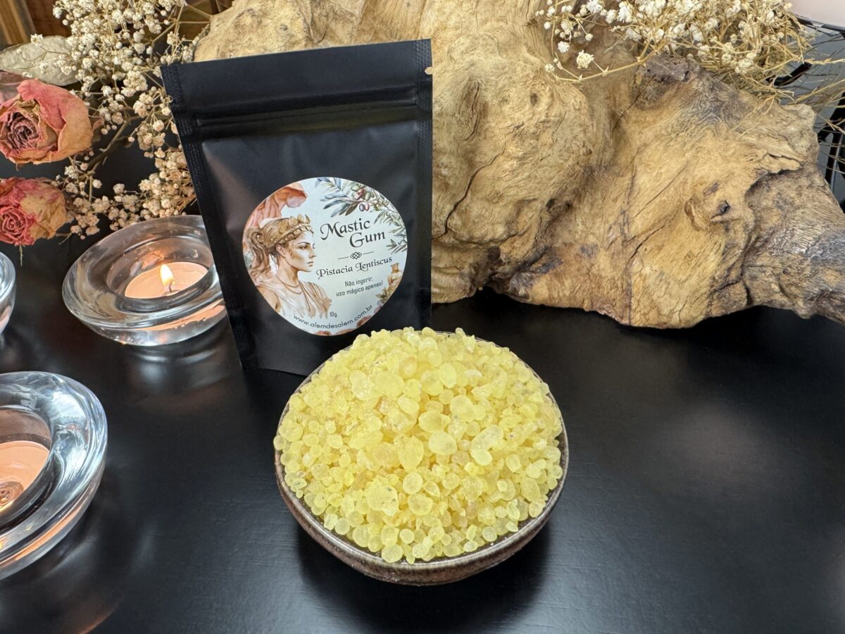 - Usos Ritualísticos: Empregada na preparação de óleos sagrados e perfumes, a Mastic Gum oferece um aroma único e é utilizada em rituais de purificação, elevação espiritual e proteção energética.