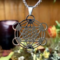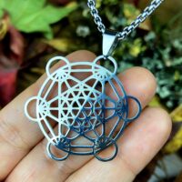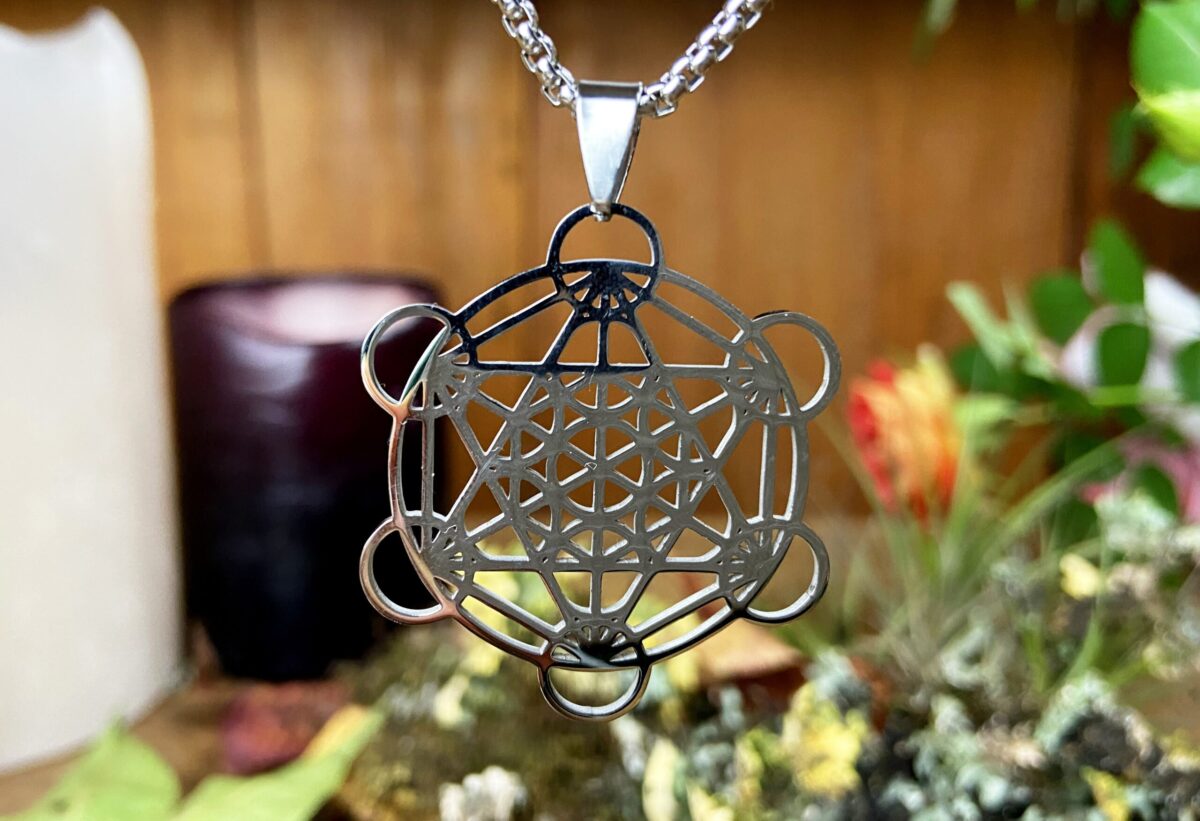 Belíssimo pingente em aço inox com corrente representando simbologia do Arcanjo Metatron